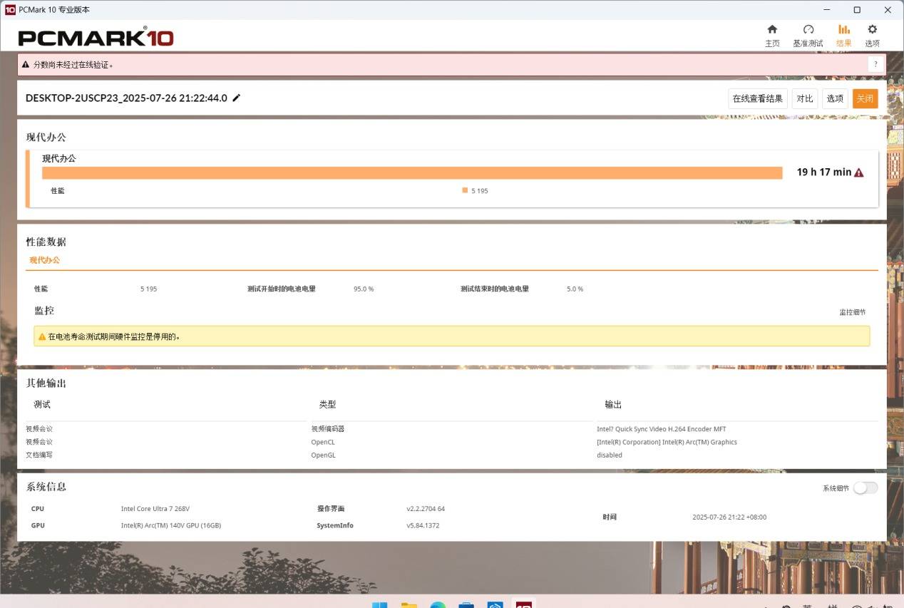 这份长续航能力的实现,既得益于 Core Ultra 平台本身能效表现的提升,也依赖于整机在多个环节的功耗优化。
