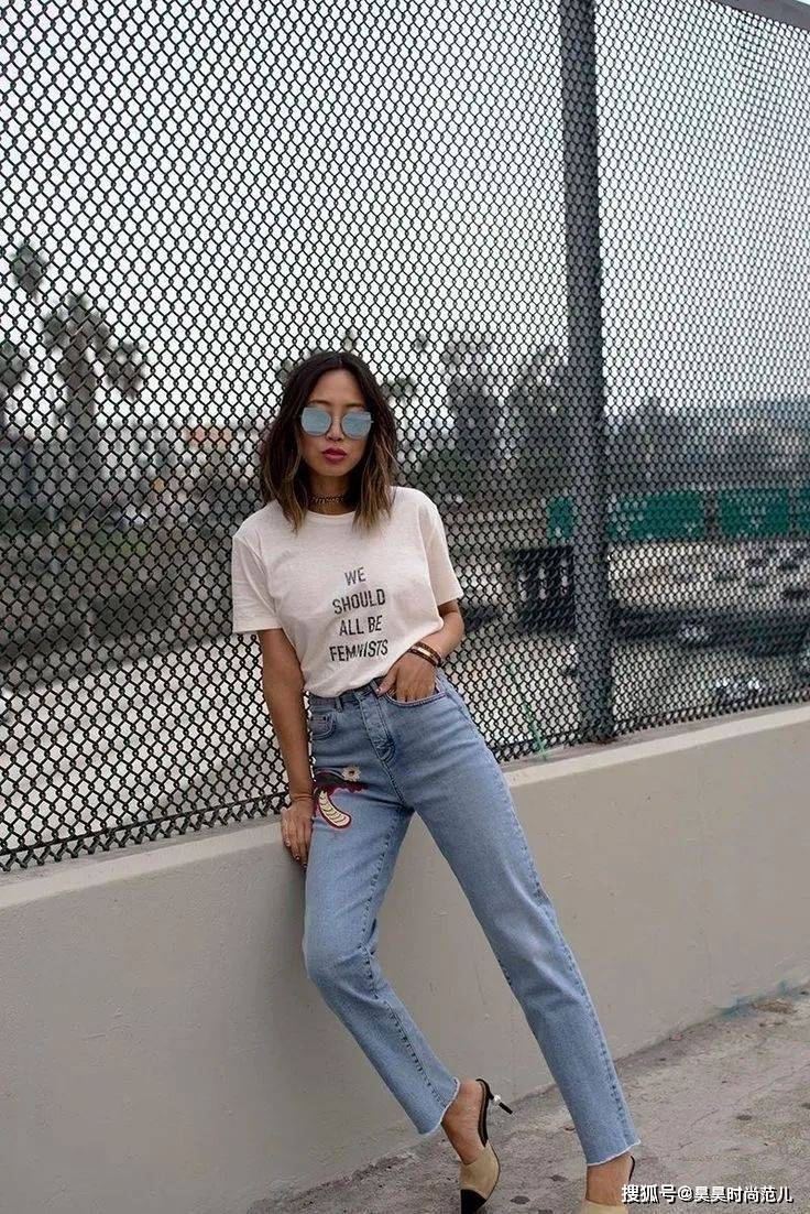 下面就一起来看看,今年夏天,都有哪些简单好搭的T恤+牛仔裤穿搭示范。