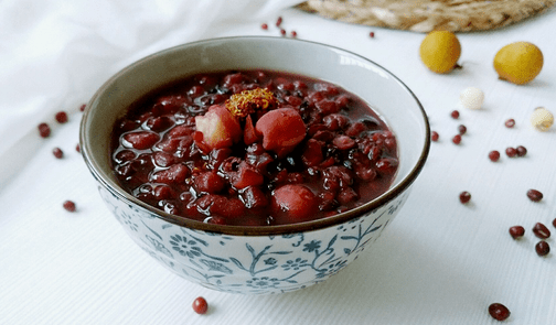 做法:将红豆洗净泡水2小时以上,与桂圆、糯米一起倒入锅中,加水适量,开火煮沸,转小火熬煮40分钟左右,加冰糖即可。