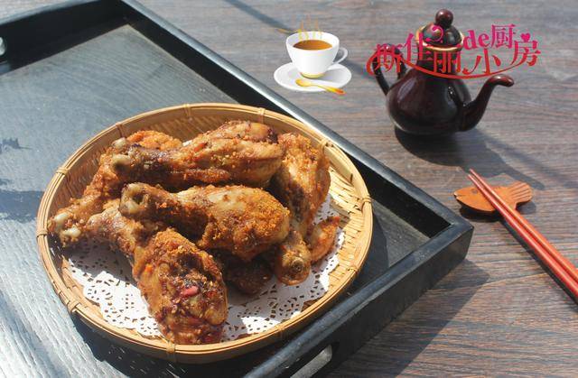 小贴士:1. 提前将琵琶鸡腿表面划上几刀,以便腌制入味; 2. 将处理过的鸡腿加入盐、姜蒜末、调味料汁等拌均匀后放入冰箱中冷藏腌制,中间翻动以便入味; 3. 比起油炸,用空气炸锅制作起来更健康, 先放入预热后空气炸锅中炸上10分钟至八成熟,再撒上辣椒孜然的烧烤粉继续炸,中间翻动一次,以便双面入味即可。