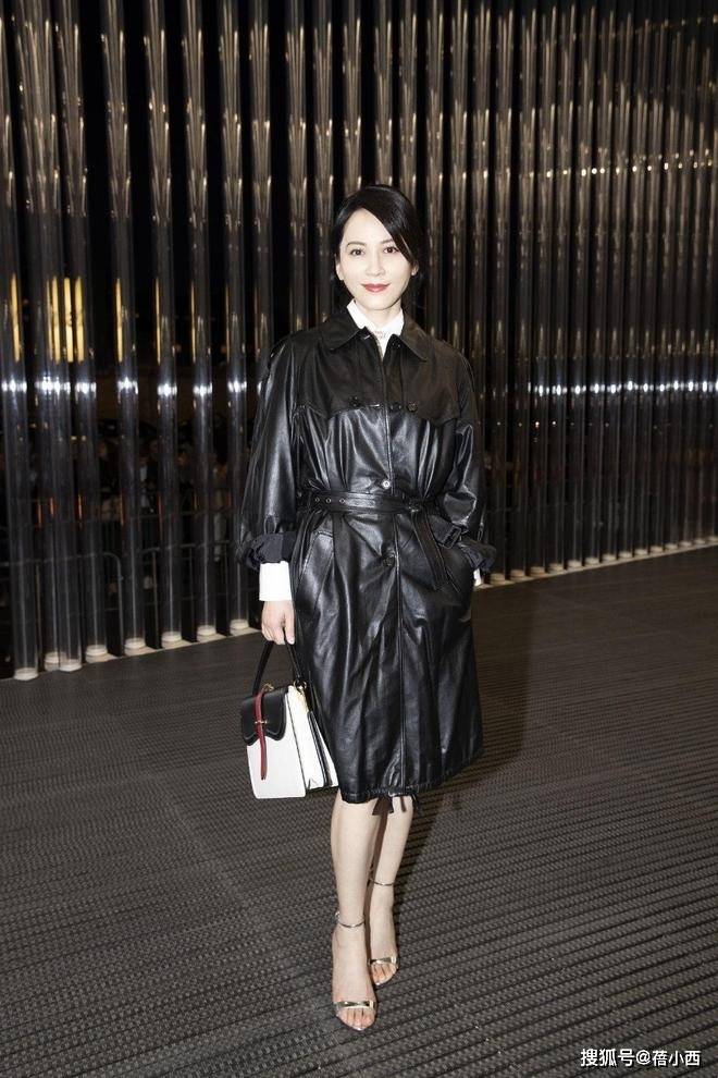 这件黑大衣在某种程度上可充当“连衣裙”,皮质面料在秋季很流行,因为具有良好的防风效果;腰带的存在显得腿更长了。厚底鞋近几年风其实挺大的,但俞飞鸿并没有选择。厚底鞋虽然同样有增高的作用,但小个子女生穿上这种“笨重鞋子”的话,很容易给人留下腿短、粗的印象。