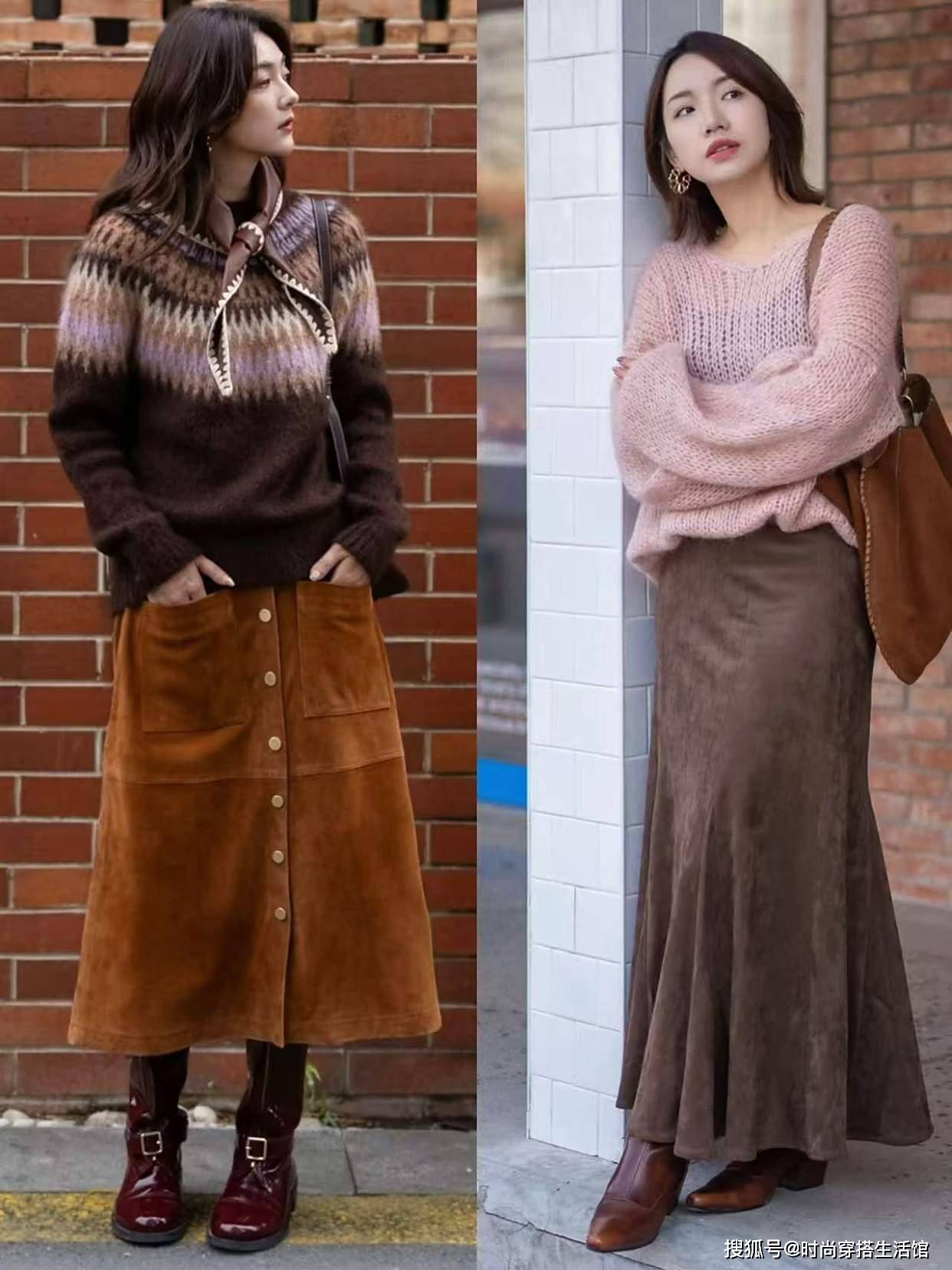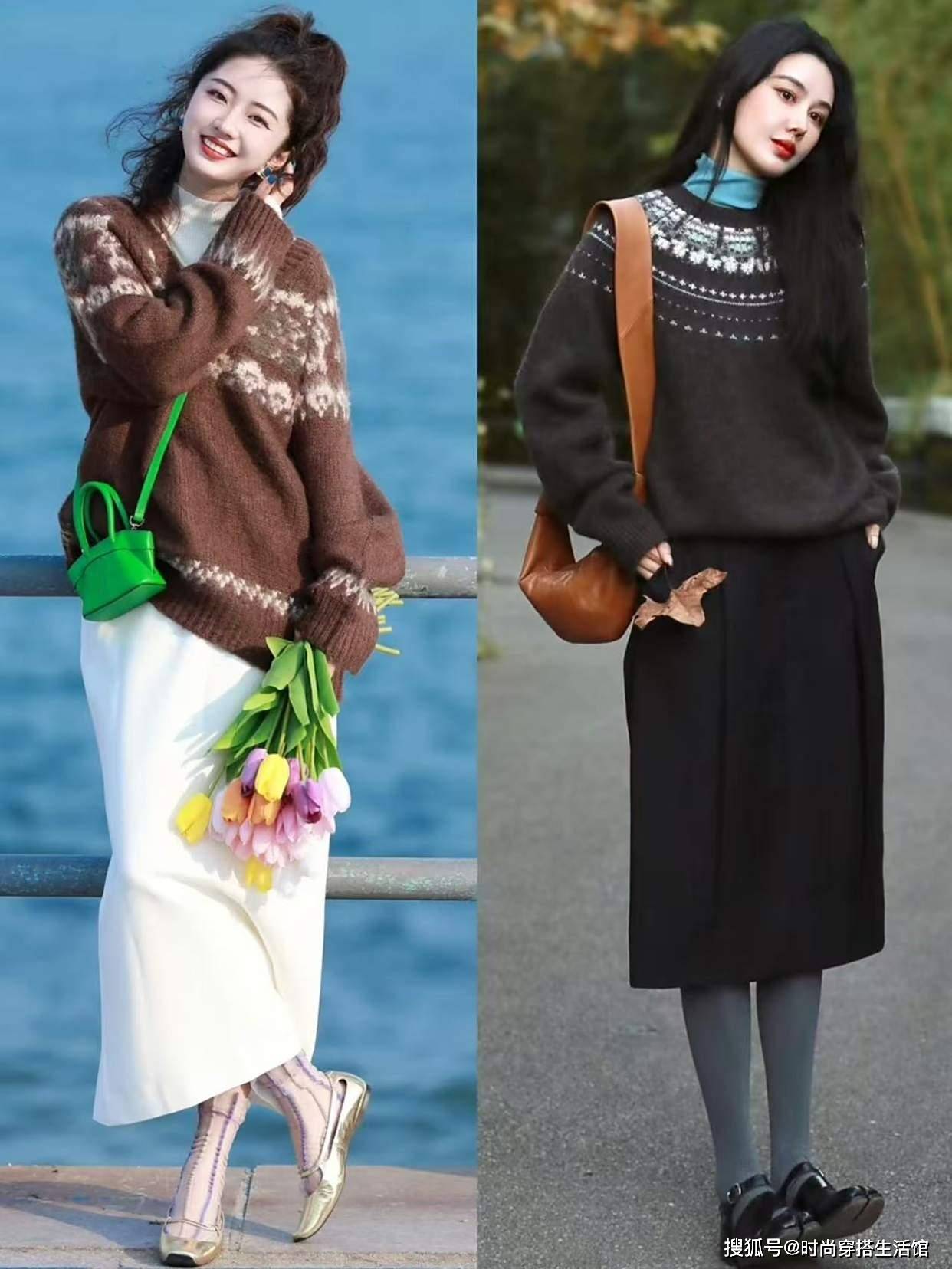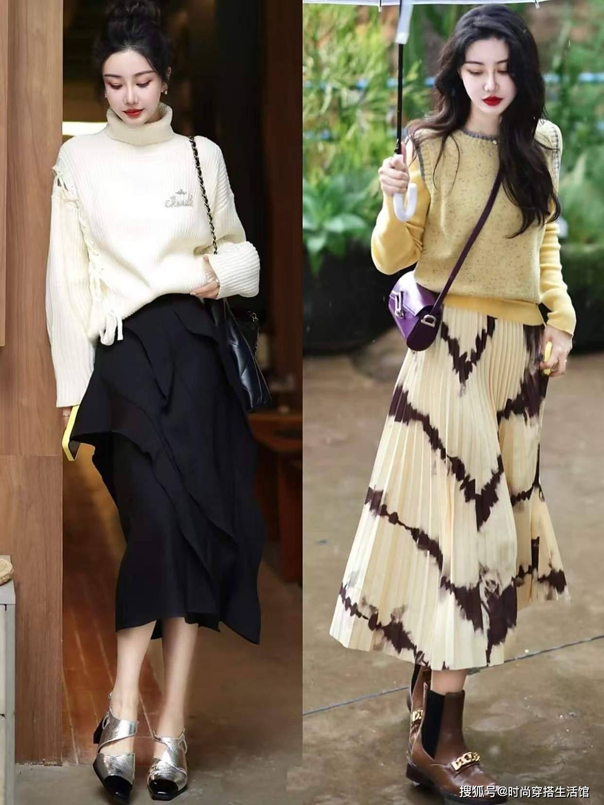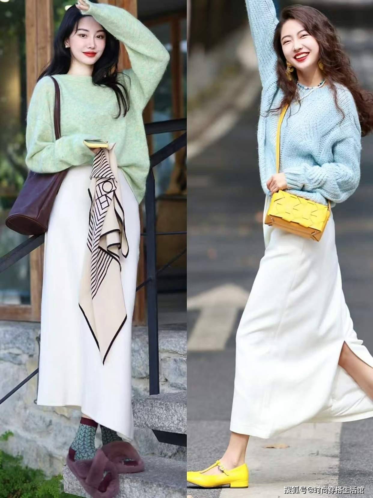 今年“毛衣+半身裙”太美了,这样穿减龄时髦又高级,太适合秋天