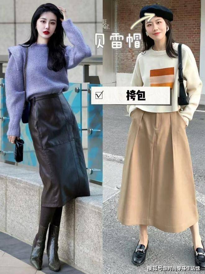 ⑵毛衣+半身裙,不挑身材不挑年龄