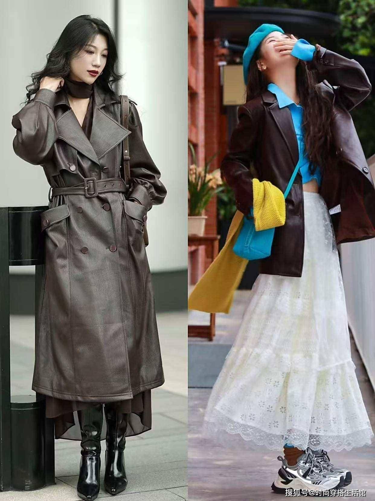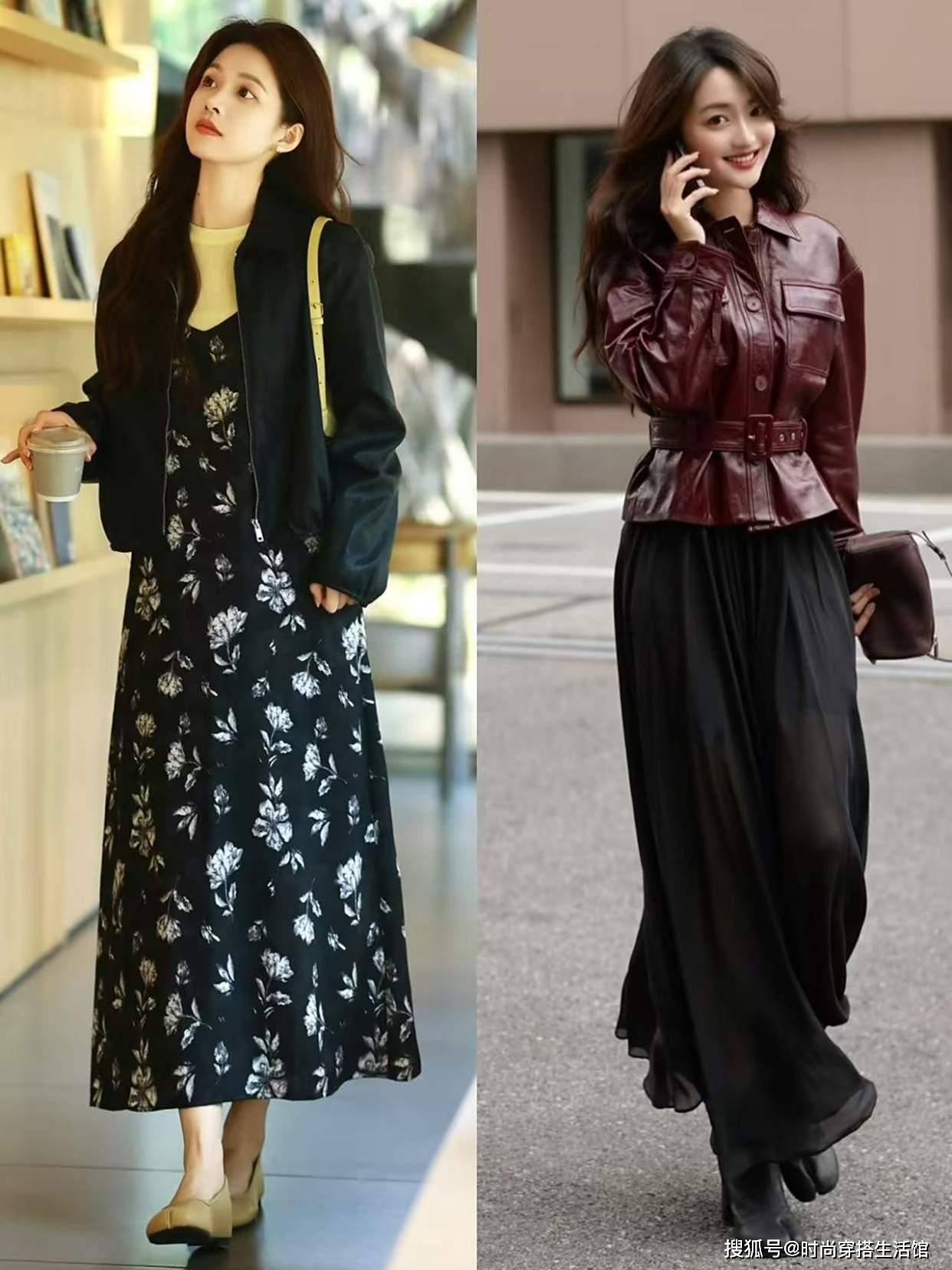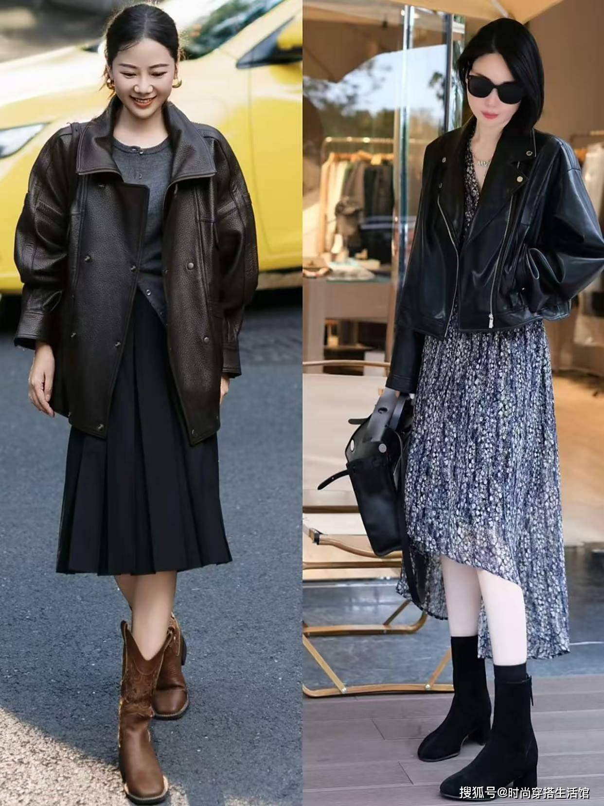 今年秋天火了一种穿法:皮衣+裙子,又美又飒,比你想象中更好看