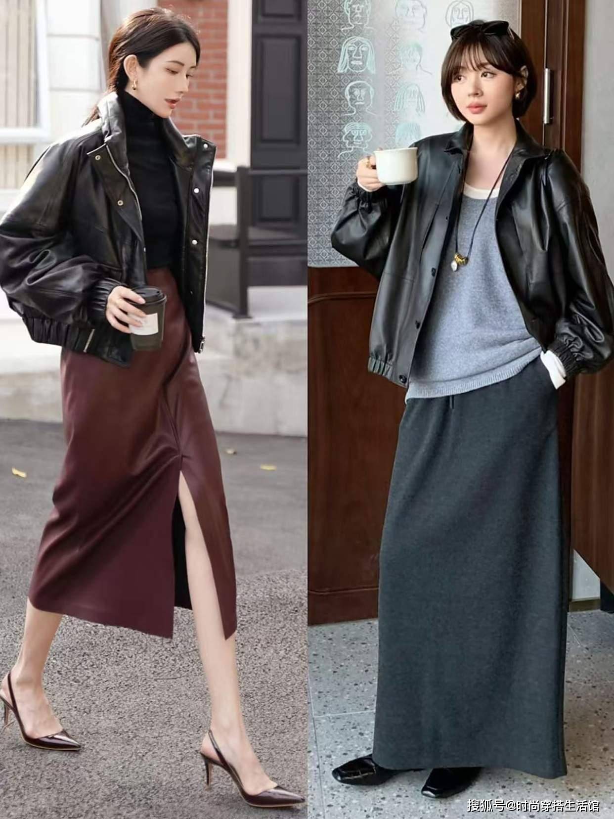 <第二点>皮衣+裙子,温度与风度兼备