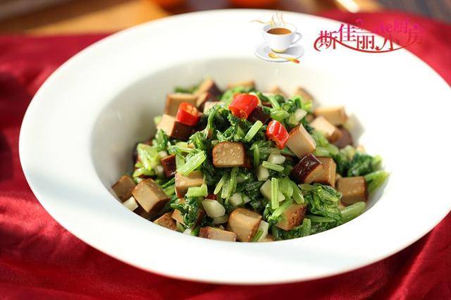 制作过程: 将香干切成小丁,蒜和红椒切成细末备用; 烧锅开水,加入少许盐和几滴油,将萝卜樱菜放进锅中焯烫变色后捞出切成细末备用,再将香干丁放进锅中焯煮两分钟后捞出备用。烧热锅放入适量的油,加入少许蒜末和红椒末放进锅中煸炒香,加入香干丁放进锅中翻炒几下,再加入萝卜樱菜放进锅中翻炒几下,加入少许盐调味,翻炒均匀即可。