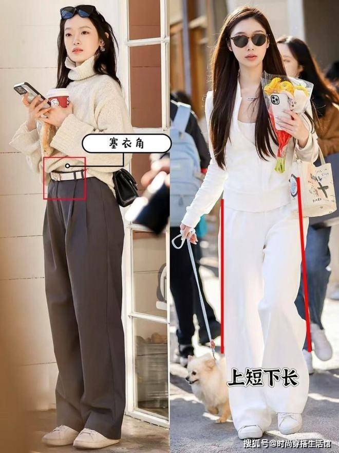 秋天我们不管是选择什么样的服装,最关键的就是要塑造出腰线,尤其是像秋高气爽的季节,我们选择的服装搭配相对厚实,就很容易出现臃肿和显胖的现象。那么我们就需要抬高腰线,利用塞衣角,上短下长或者是腰带,从而让我们的穿搭更加显高显腿长。