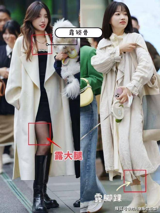 国庆出游早晚温差会比较大,有些怕冷的女性就会将自己包裹得炎炎实实,其实对于秋天来说温度还没有很低,我们在穿风衣和平头靴的时候要适当的露出肌肤线条,比如像是大腿、小腿和脚踝等纤细的部位,将鞋裤能够有效的衔接起来,视觉上更增高显瘦。
