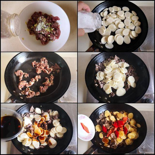 制作过程: 将茭白、牛肉和红椒切成片备用。 牛肉片加入少许盐、淀粉、料酒、生抽和姜末等调味料拌均匀腌制3分钟备用。 烧锅水加入1小勺盐,将茭白片放进锅中焯煮两分钟后捞出备用。 烧热锅放入适量的油,将腌制好的牛肉片放进锅中翻炒至变色,加入焯好的茭白片放进锅中翻炒几下,加入少许生抽和料酒,再加入少许盐调味,翻炒均匀后再加入少许红椒片翻炒两下即可。