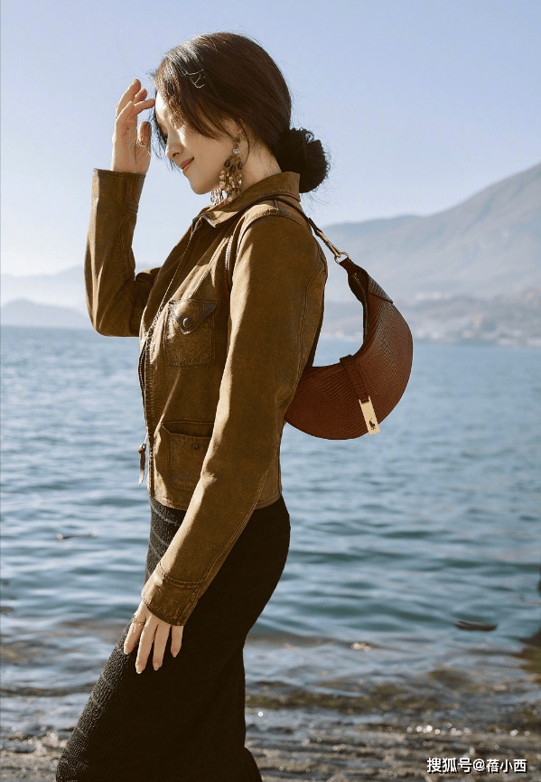 杨钰莹此次的穿搭选择了一件棕色系的短外套,这正是美拉德风格的典型代表色之一。美拉德风格源自于食物在加热过程中产生的棕褐色泽,给人一种温暖、醇厚且高级的感觉。这件短外套在版型上十分利落,简洁的设计没有过多的装饰,却恰到好处地勾勒出她的身形线条,展现出干练与优雅的气质。短款的设计巧妙地提高了腰线,在视觉上拉长了下半身的比例,让整体造型更显修长。