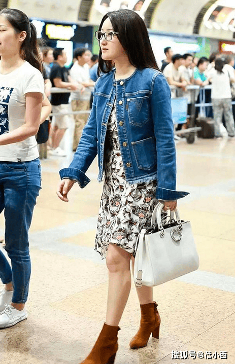 杨钰莹这一身穿搭极具特色与层次感,经典的蓝色牛仔外套简约利落,翻折的袖口增添了几分随性不羁 。内搭是一条印花连衣裙,花朵图案看起来特别的柔美浪漫,中和了牛仔的硬朗感,刚柔并济。