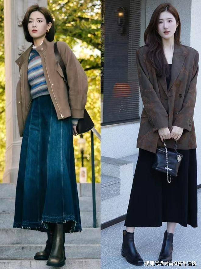 其次对于秋天早晚温差比较大,很多人会将穿搭捂得严严实实的,这样搭配方式只会更加的枯燥和沉闷,而且秋天的温度还没有很低,我们选择太厚实的穿搭只会更加的闷热,反之我们选择通过上装或者下装,能够适当的露出肌肤线条完美的搭配沉闷感,比如我们选择V领和九分裤或者半身裙,适当的露出锁骨和脚踝,能让我们的整个造型视觉上更加轻盈和显瘦。