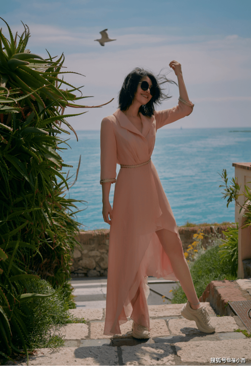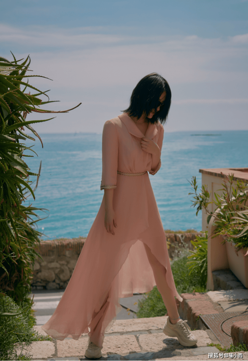 56岁许晴太显年轻!剪了齐肩短发穿粉色连衣裙去度假,嫩得像28岁