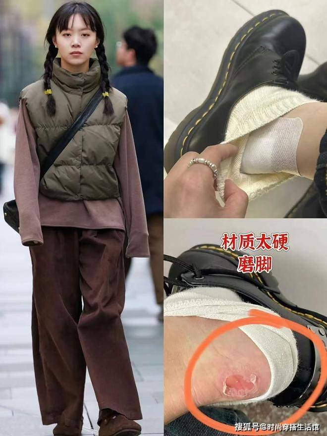 其次就是马丁靴算是经典百搭的鞋子,也是因为其独特绑带设计和耐磨和耐穿的特征从而赢得男女老少的喜欢,但是对于马丁靴来说缺点还是显而易见的,就是马丁靴的材质采用的面料会相对硬朗,穿在脚上的话就很容易出现磨脚和磨皮的现象,整体搭配的舒适度就会大打折扣,而且硬朗的材质面料也限制了我们搭配的可能信。
