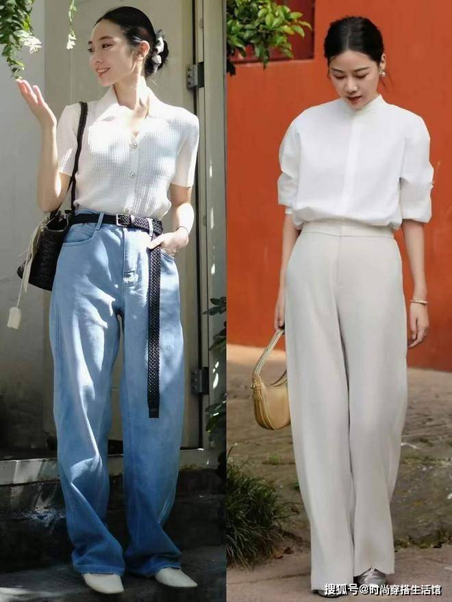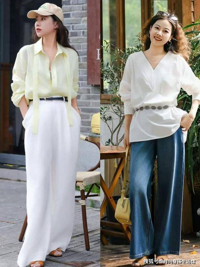 组合一:短衬衫+阔腿裤