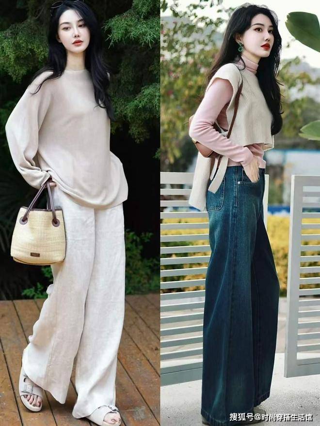 秋天穿阔腿裤最大的优势就是比紧身裤和小脚裤更加的舒适和自由,整体搭配气质完全不会累赘拖沓,同时阔腿裤的适配风格也非常的丰富和经常,我们能够塑造出慵懒、盐系、复古和法式的搭配风格,选择一条舒适百搭的阔腿裤轻松能够解锁各种时髦造型,完全不用担心会暴露腿部缺点。