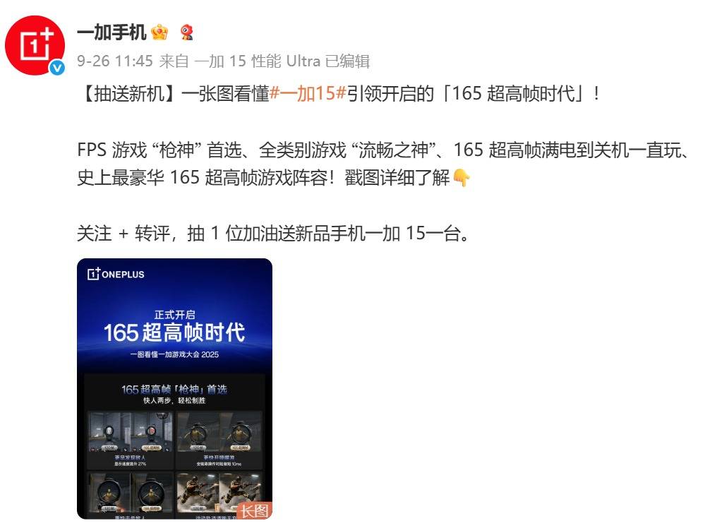 图片来源微博一加手机官方