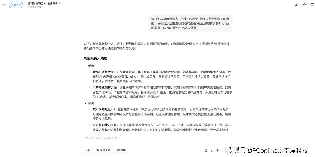 当你面临复杂的决策,例如职业规划或项目选择时,可以设定一个场景,让AI扮演不同领域的专家,为你提供多维度的分析。你可以提出这样的需求:“请分别从风险投资人、行业分析师和资深人力资源顾问的角度,分析我从当前岗位转型去AI创业赛道的利弊,并预测未来三年可能遇到的挑战与机遇。”豆包会综合其庞大的信息库,为你构建一个逻辑严谨的决策分析模型,帮助你更全面、更理性地审视问题,为现实选择提供有价值的参考。