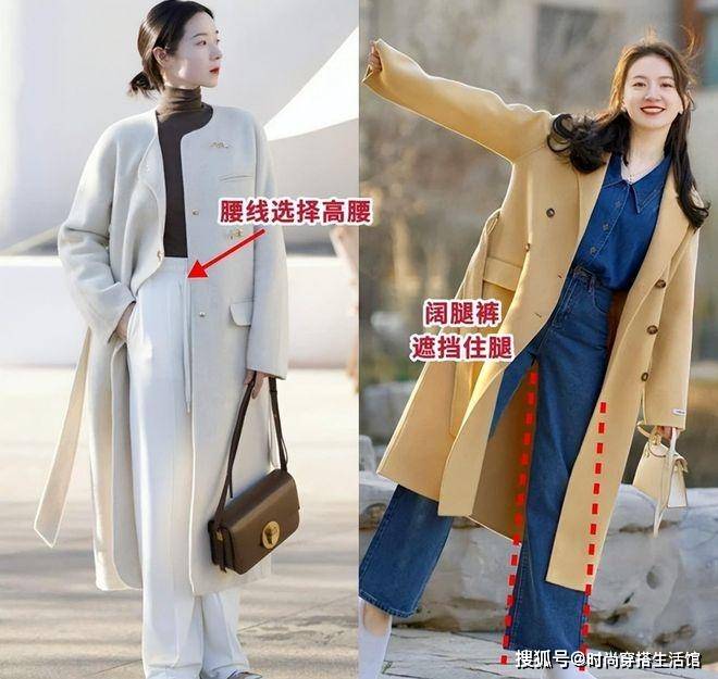 对于冬天穿大衣来说搭配裙子的虽然说非常的遮肉显瘦,但是选择裙子的话非常的不够保暖,尤其是对于北方城市的小姐姐来说完全不适合,那么最适合的搭配方式就是选择搭配裙子,搭配上大衣不仅保暖性和遮肉效果超强,同时我们还可以借助高腰的阔腿长裤能够有型的延长我们的双腿比例,轻松提气质还遮肉 。