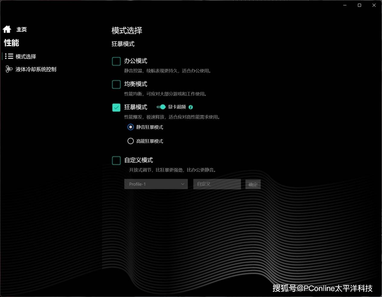 这台机械革命的“高性能静音模式”叫做“静音狂暴模式”,名字还挺酷,在自带的控制中心里就能找到。除此之外还有一个 “高能狂暴模式”,主打的就是火力全开。这刚好给我提供了一个参照,看看传统火力全开的性能模式和英特尔的静音狂暴模式到底区别在哪里?
