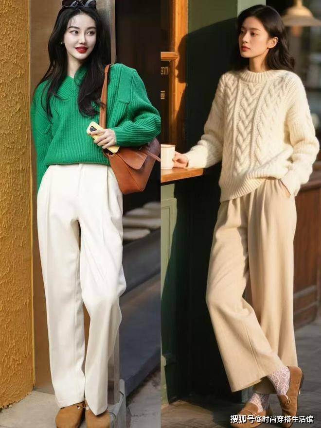 天气转凉才发现:满大街都在穿“毛衣+阔腿裤”,洋气又高级,美