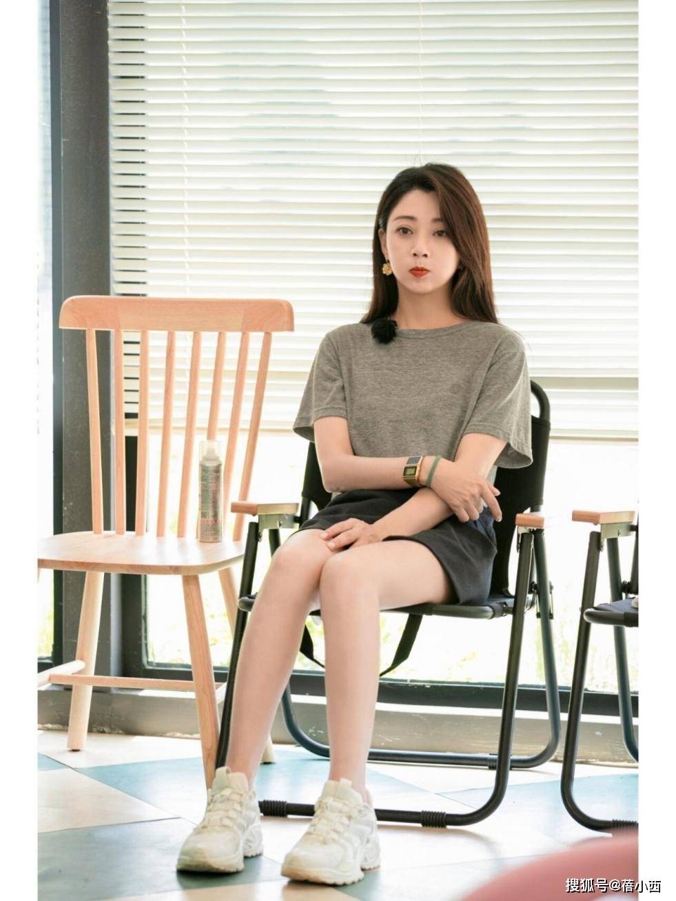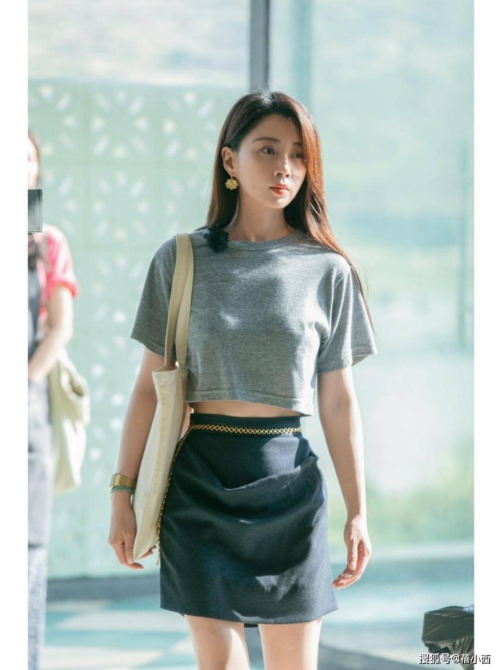 当上半身是灰色衣服时,腿上所穿裤子、裙子可大胆尝试黑色。裙子可以说是中年女性的最爱,每个女生衣柜里是少不了几条的。殷桃腿上这款设计很有个性,腰部融入了金色链条设计,将人的注意力吸引到小蛮腰上。小肚子处的面料不止一层,尽显层次美。脚上运动鞋看上有些厚度,春秋冬三个季节温度低些,穿脚上刚刚好,夏天则必须待在空调房,否则脚很容易闷热。