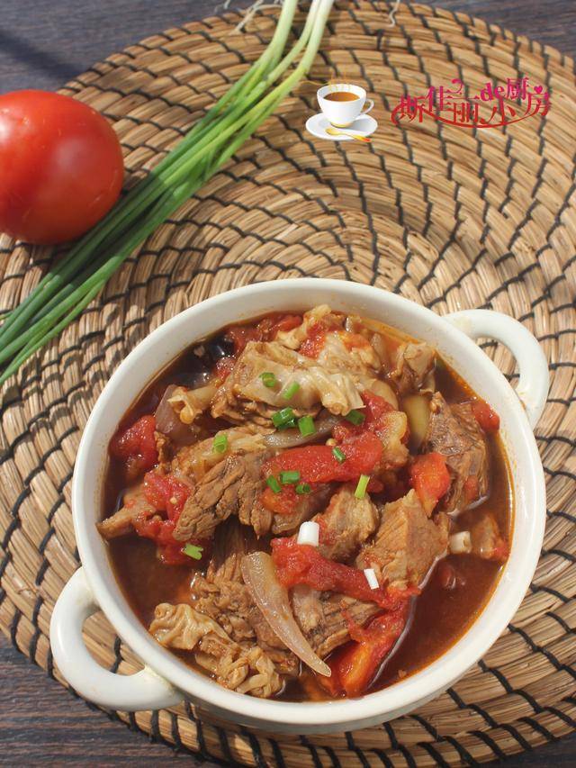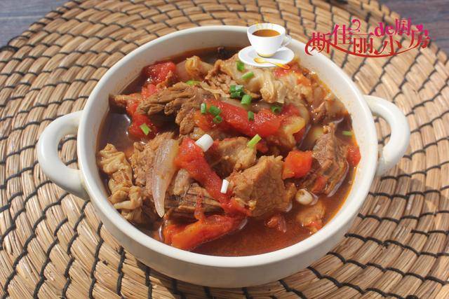 小贴士:1. 番茄整个放入开水中烫一下, 就很容易去皮,去皮后的番茄口感更好; 2. 烧锅水,牛腩冷水下锅焯水,加入姜片和高度白酒去腥; 3. 将焯好的牛腩、番茄、洋葱片放入电炖锅中,加入姜片等大料、生抽等调味料和番茄酱, 无需加水,按下电炖锅炖煮牛腩的功能键; 4. 炖煮好后加入少许盐等调味即可。