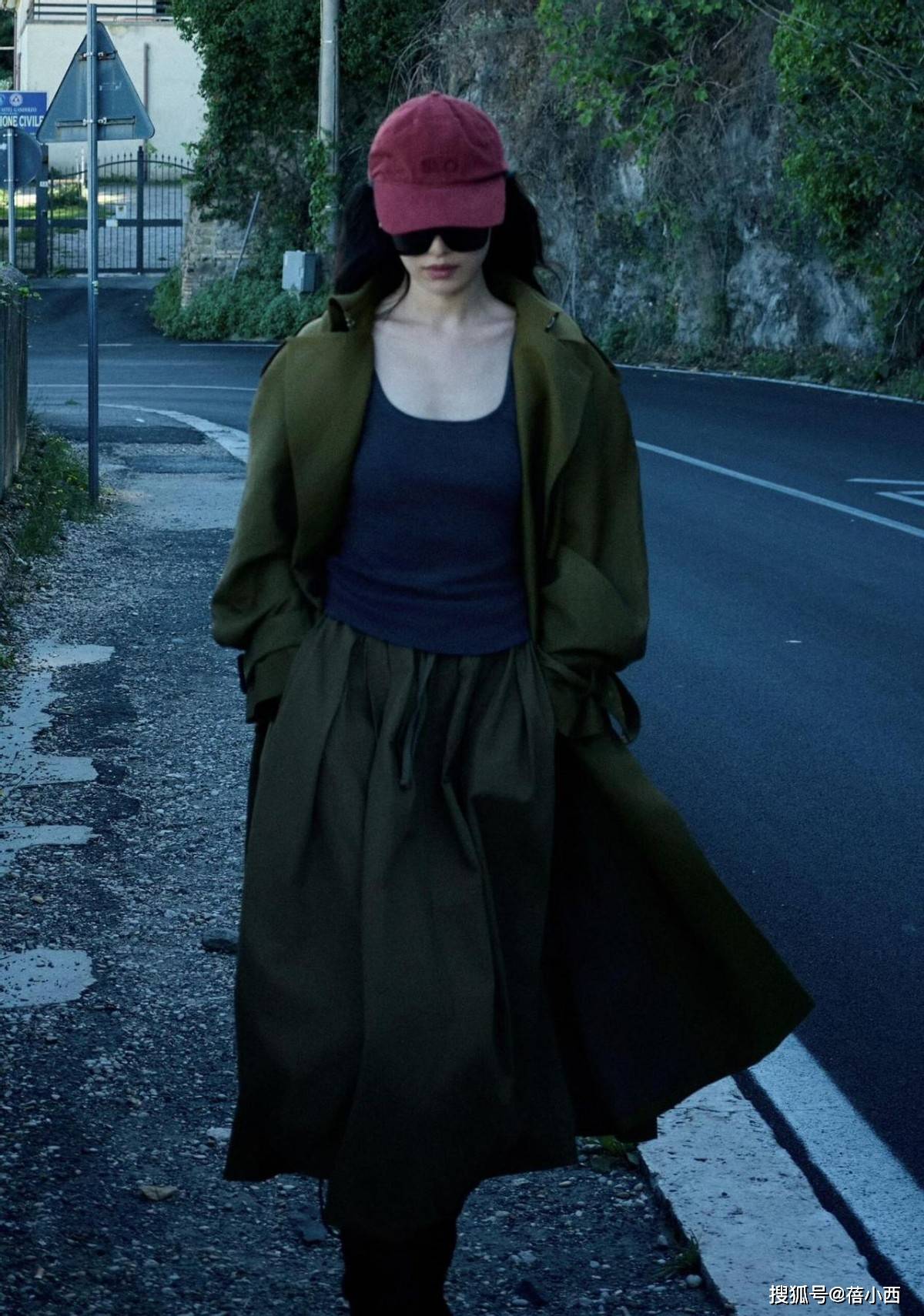 军绿色风衣内搭背心,这个组合简直绝了!风衣的硬朗感被背心的随性中和,整个人看起来既帅气又不失女人味,而且倪妮选择了一款oversize版型的风衣,走路带风的气场直接拉满。内搭的背心是修身款,完美展现了身材曲线,这种松紧结合的穿法特别显瘦,秋天气温良好的时候都可以这么穿。
