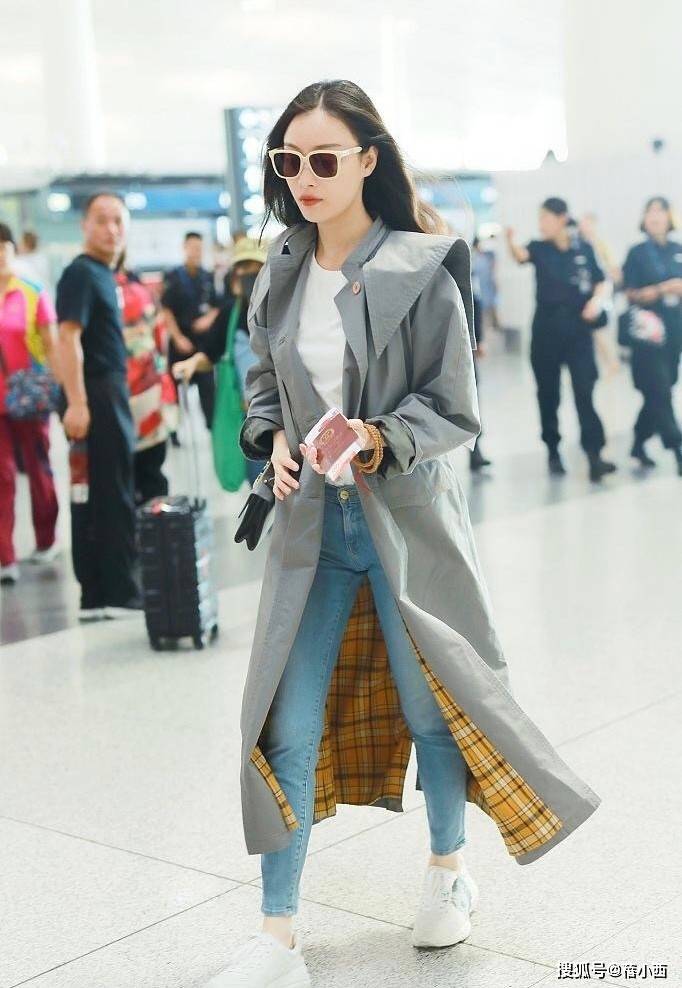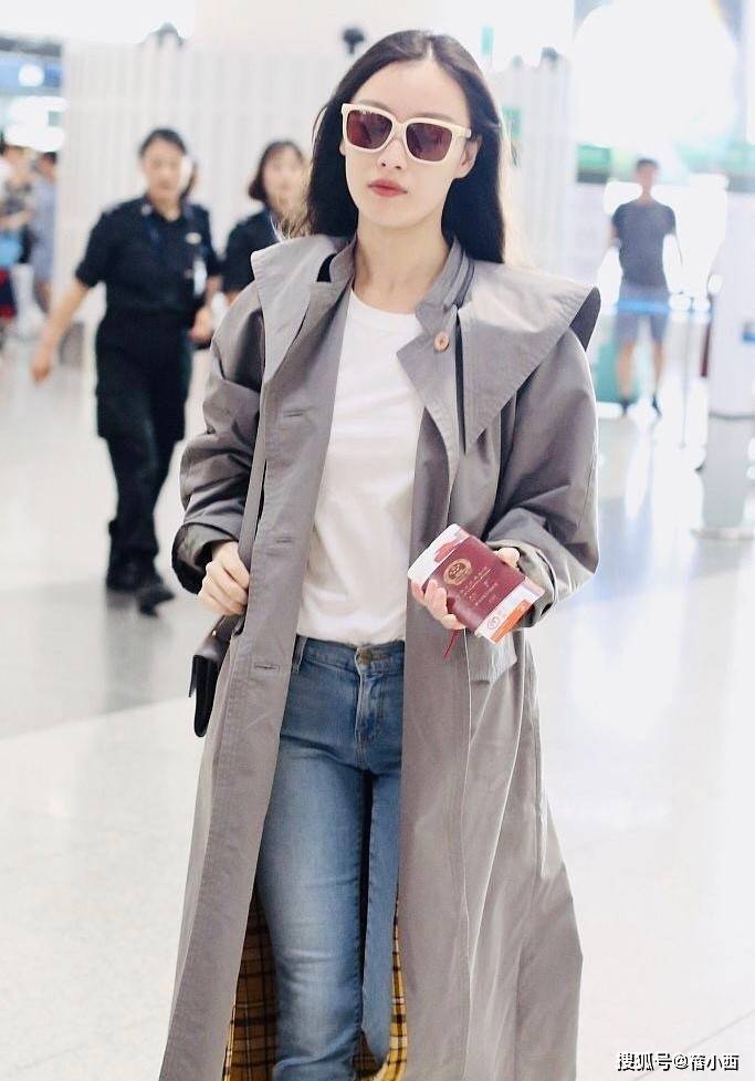 比如,她经常用风衣搭配牛仔裤,但不是普通的阔腿款,而是选择修饰的版型,再配上一双小白鞋,整个人看起来清爽又利落。这种搭配不仅修饰腿型,还能营造出随性自在的氛围,比打底裤有型多了。