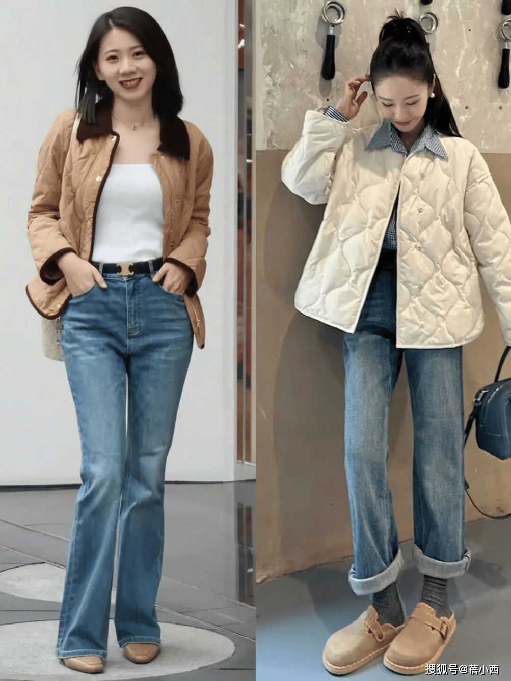 搭配1:奶奶棉服+牛仔裤