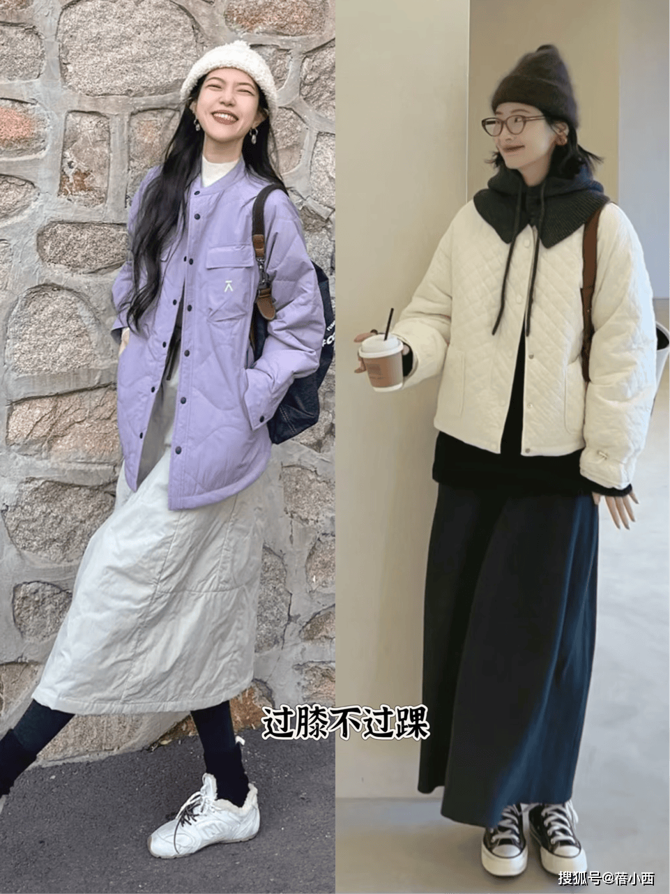 搭配2:奶奶棉服+半身裙