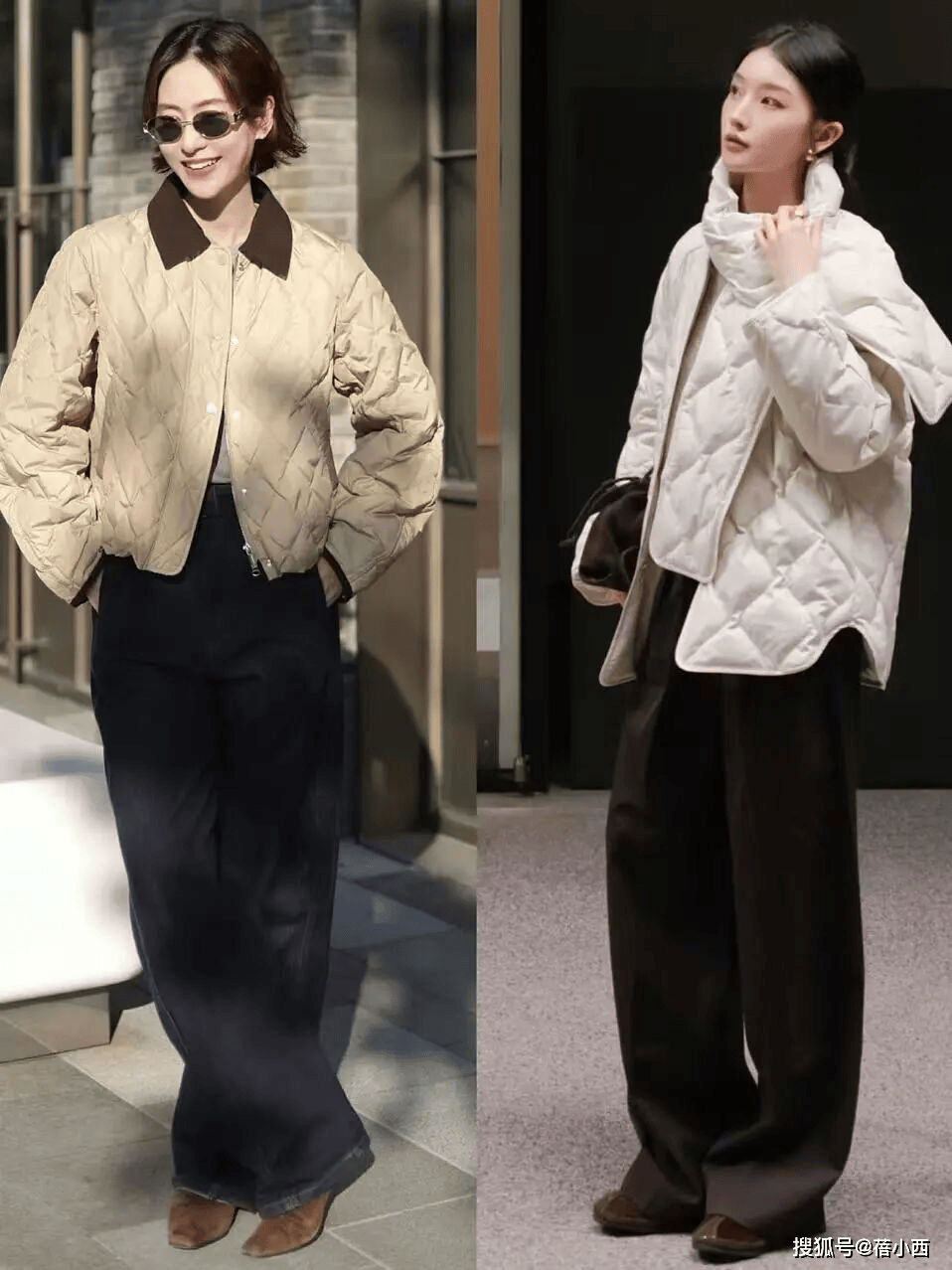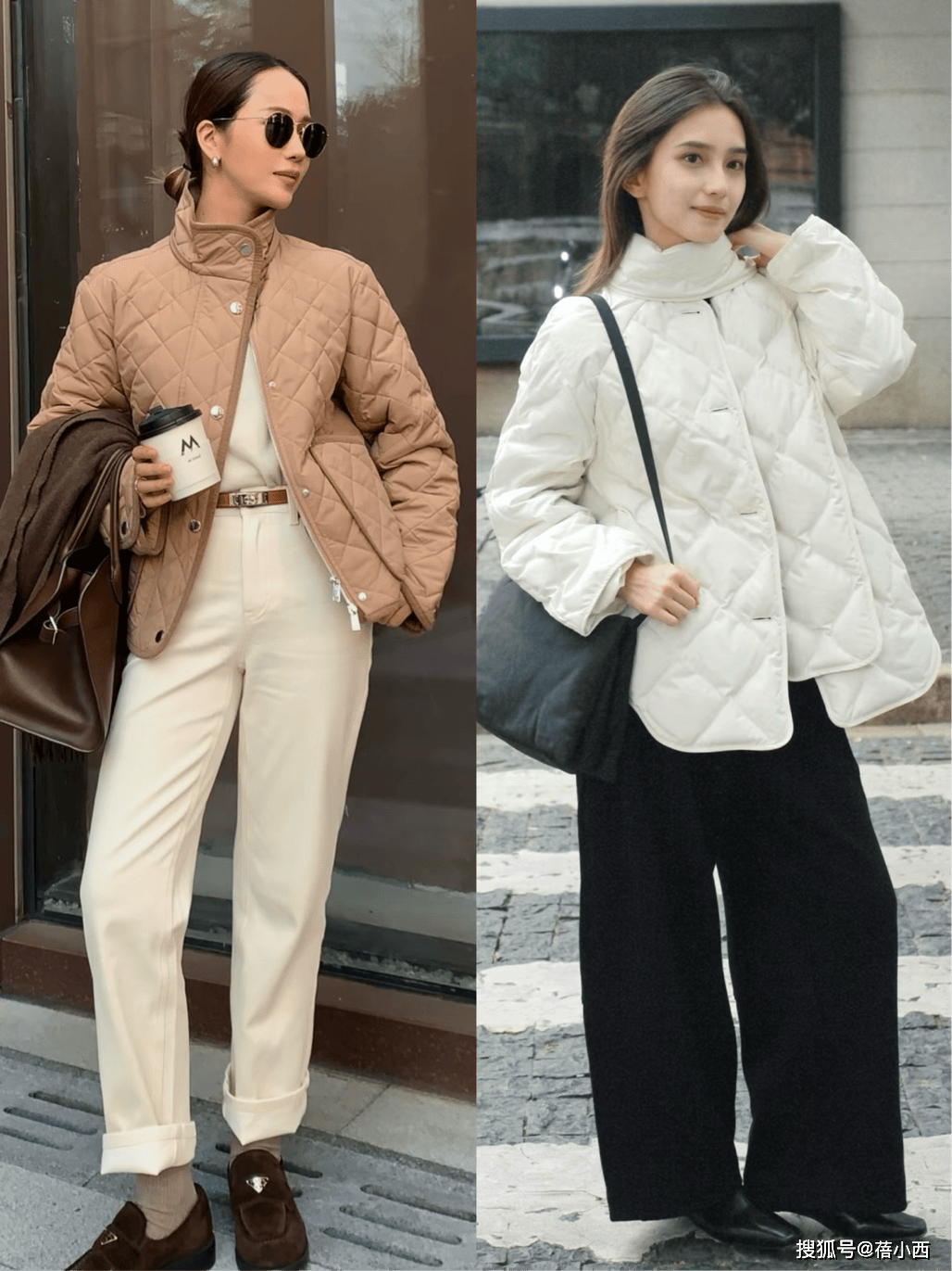 奶奶棉服和普通羽绒服最大的区别就是表面的绗缝纹理,菱格纹、方形格纹不仅显设计感,还能从视觉上“收窄”身形,不像传统棉服那样膨胀显胖。就算是大骨架或有点小赘肉,穿起来也不会有紧绷或邋遢感哦。