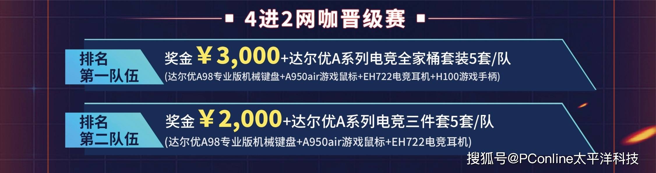 积分第二队伍将获得2000元奖金加上达尔优电竞三件套(A98专业版机械键盘 + A950air游戏鼠标 + EH722电竞耳机)