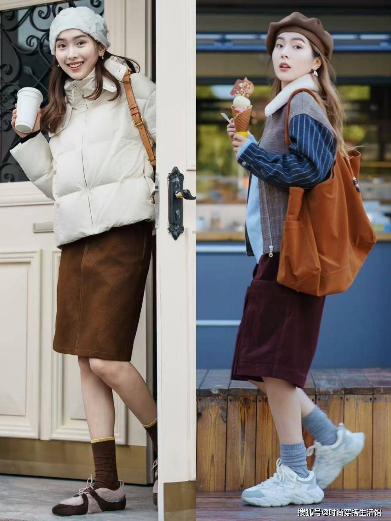 秋冬季节想要将裙子和运动鞋穿出高级感的话,对于北方城市的小姐姐来说已经全身包裹起来了,毕竟温度太低不注意保暖的话真的很容易出现“老寒腿”。