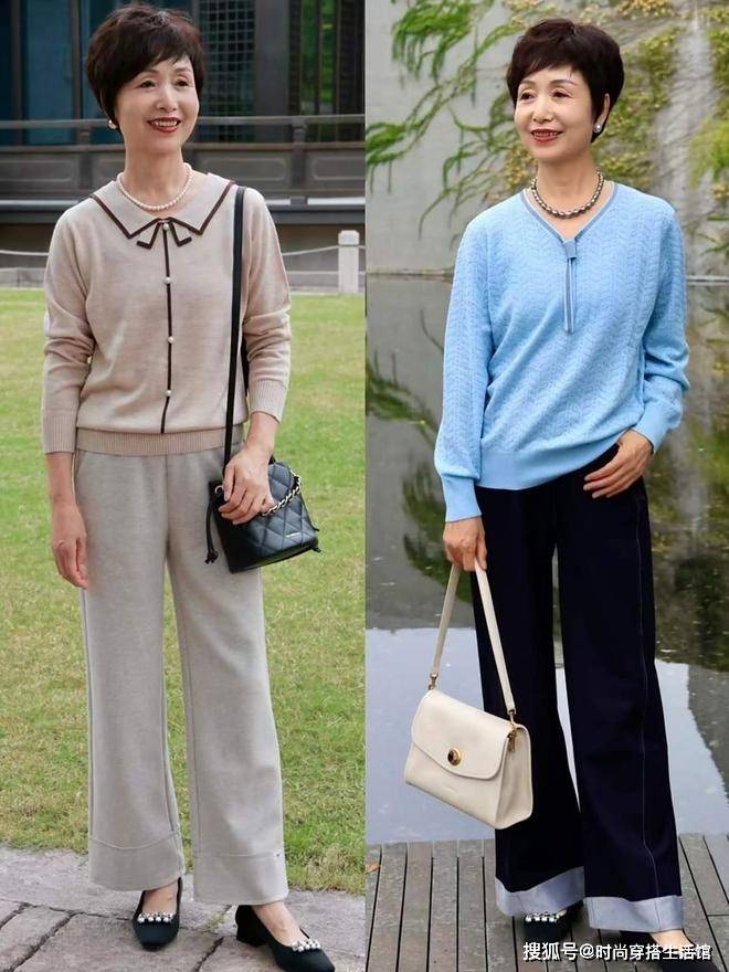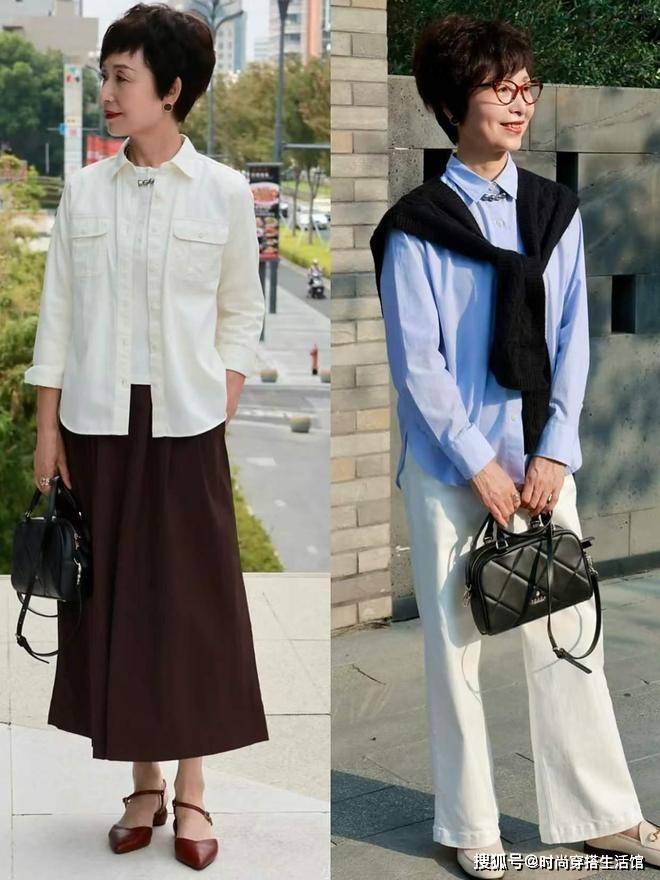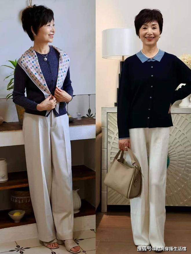 当然,在选择设计款之前,更重要的是保证服装质感。天然材质基础款、简约款比普通面料的设计款更值得大龄女性投资。羊绒、真丝、亚麻、精纺羊毛等天然面料自带光泽感和垂坠感,即使款式简单也显贵气。日常穿着中也可试着用软硬、光泽度不同的材质进行混搭哦~