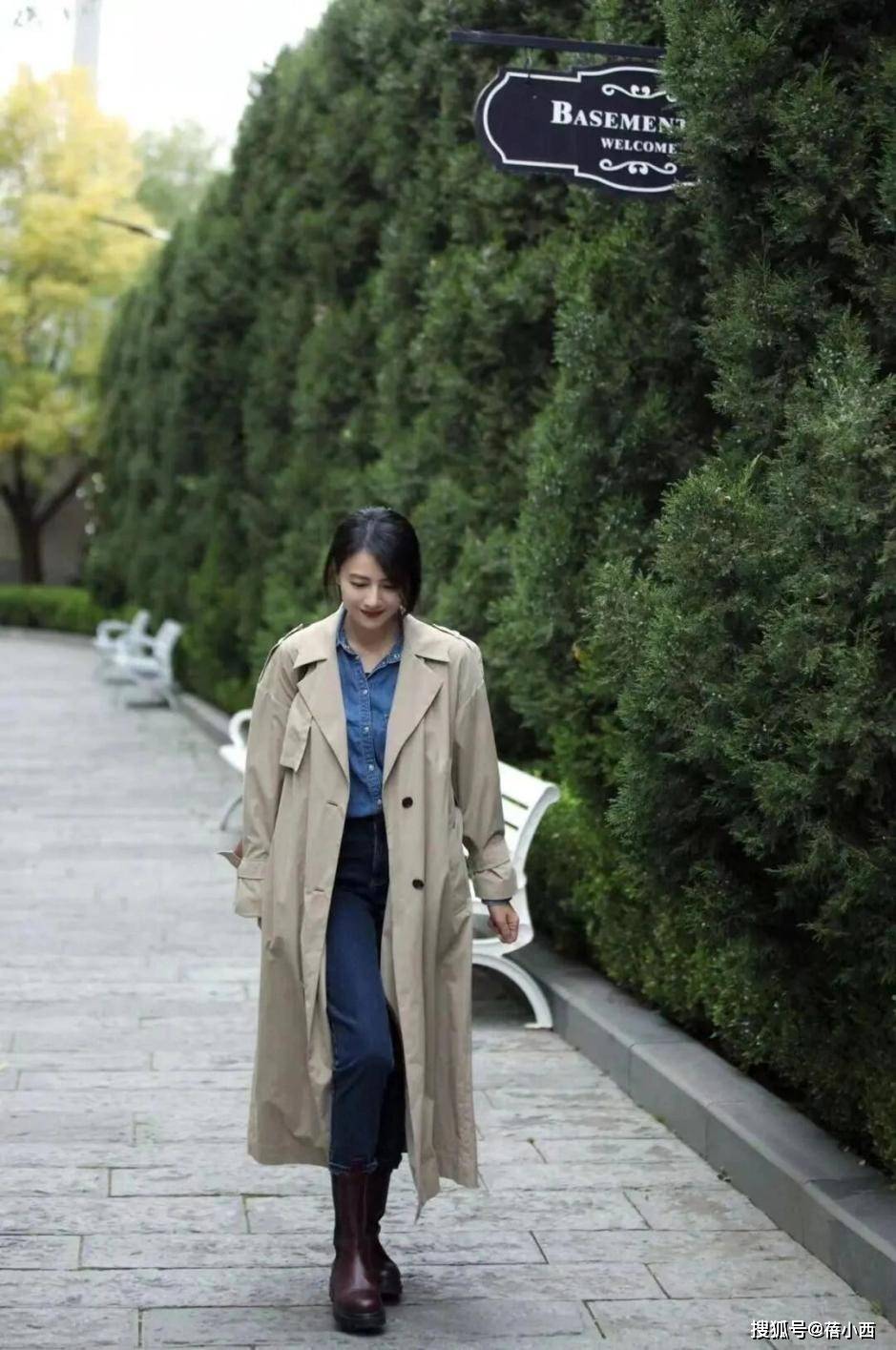 看了45岁高圆圆的穿搭,我悟了:风衣不配半身裙、短靴,才更洋气
