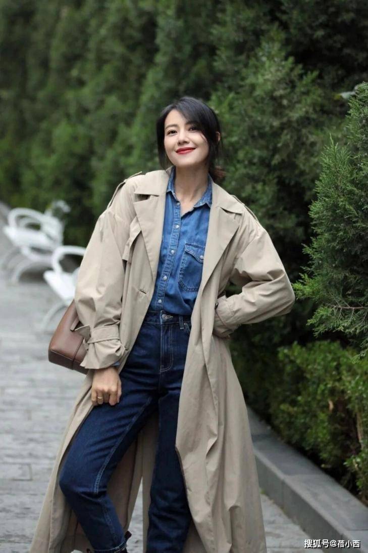 高圆圆的风衣穿搭给人眼前一亮的感觉,45岁看上去像28岁。