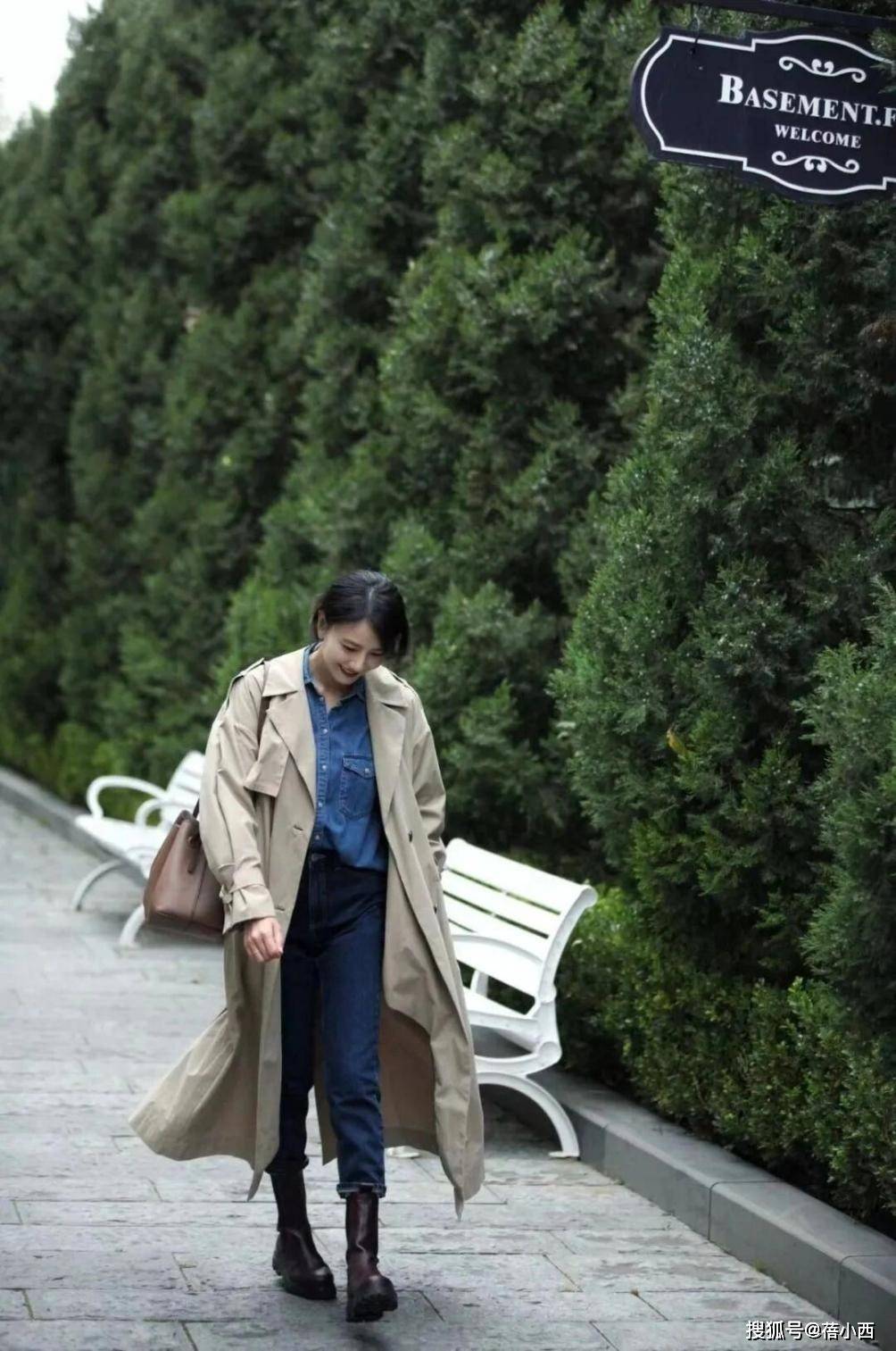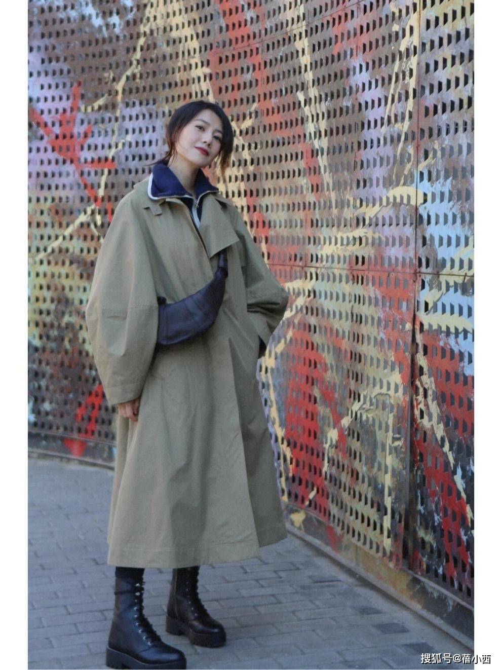 高圆圆身上这件完全符合“高品质”要求,不管是从质感上说,还是从耐磨度上来看,都是非常不错的。生活中,我们在穿风衣时会有一担心,即压个子,这样的话,购买时就要挑对长度。再来说说风衣的衣长位置,其最好在小腿肚上下3-5cm的位置,娇小女生的话,肯定选往上3-5厘米。女神所穿这件完全符合此要求,露出一部分小腿曲线,进而不会出现显胖情况。