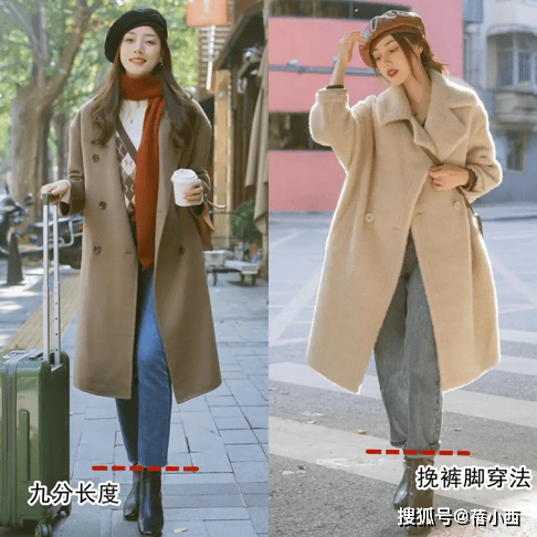 还可以通过“上下宽窄对比”突出身形优势,毕竟秋冬穿搭常离不开厚实的上衣,比如宽松的廓形大衣、慵懒的长款毛衣。此时下身若搭配修身小脚牛仔裤与切尔西靴,宽松上衣与紧身裤的对比能巧妙衬托出腿部纤细,弱化上衣的臃肿感。