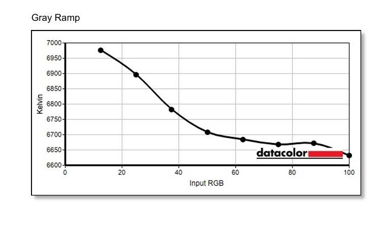 色温方面,在显示不同亮度下的纯白画面时,微星 MPG 271QR QD-OLED X50流光的色温一直稳定在6600K之间浮动,这样的色温表现意味着面板的色彩一致性较为优秀,同时偏冷的色温也较为适合FPS游戏的画面呈现。