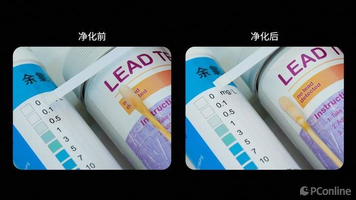 在实际测试中,我们分别使用了净化前、后的水,并用化学试剂进行测试。通过指示剂的颜色深浅可以看出,净化前的水含有轻微的氯与铅,而经过M7 Home 1200处理后,水中的氯与铅则几乎检测不到,无论是饮用还是用于烹饪,都能安心使用。