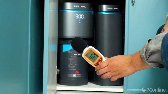 在出水效率高的同时,M7 Home 1200也保持了更稳定且低噪音的运行。在运行状态下,我们将水杯放在机身上几乎感觉不到震动,噪音仪显示仅为47 dB,这样的音量,即使在夜晚使用也不会打扰家人休息。