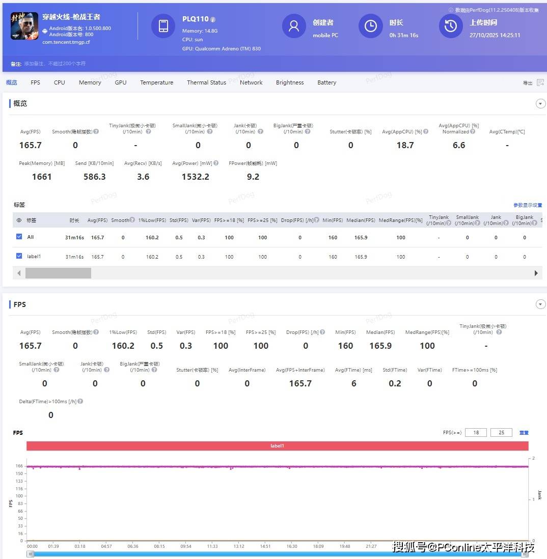 这一次的一加 Ace 6在《三角洲行动》、《穿越火线》、《暗区突围》等热门游戏中,适配了极致的165Hz超高帧体验。我们以《穿越火线》为例,从帧率图表现可以看到,游戏全程几乎是满帧运行,整体波动极小,在酣畅淋漓的刚枪对决中,带给你丝滑流畅的游戏体验。