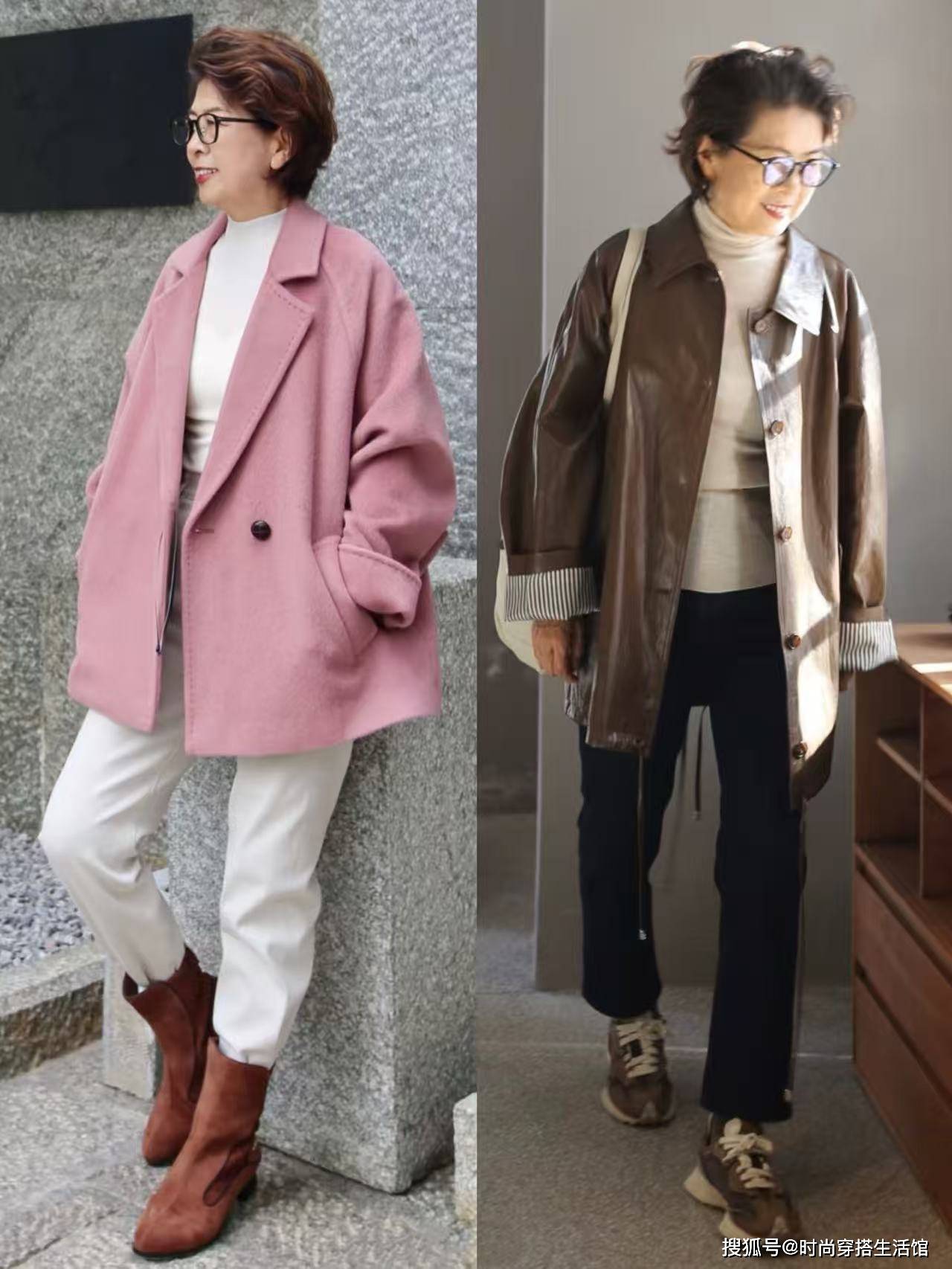 叠穿手法在“四六法则”中也是比较常见的,不过像这种搭配手法,就要采用“上衣塞腰”的方式了,基础款的内搭塞进腰身,在叠穿一件挺括有型的遮臀外套,不仅可以提升造型的层次感,而且遮肉效果也更加显著。对于五六十岁的大龄妈妈来讲,叠穿更有利于衣品的提升,可以轻松玩转高阶穿搭。