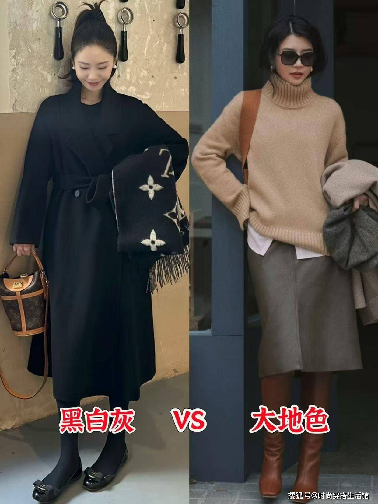 ⑵黑白灰VS大地色搭配,后者更惊艳