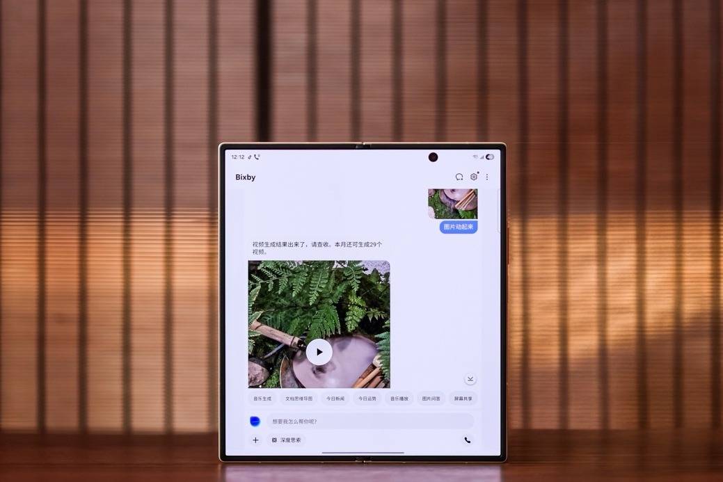 以多模态AI技术为基石,Bixby的功能性也迎来飞跃。它能够解析文本、语音、视觉等不同类型的内容并提炼摘要、生成详细的思维导图,即使用户发出复杂指令,也能快速给出解决方案。不仅如此,Bixby还支持图生视频和音乐生成功能。前者可将用户上传的静态图片变为鲜活的动态视频,后者可根据用户的描述,创作出多元风格的纯音乐。语聊视界模式更将语音与视频交互融会贯通,赋予Bixby视觉洞察与信息联动的能力,使信息获取直观明晰,并为人机交互平添几分人性化的温度。