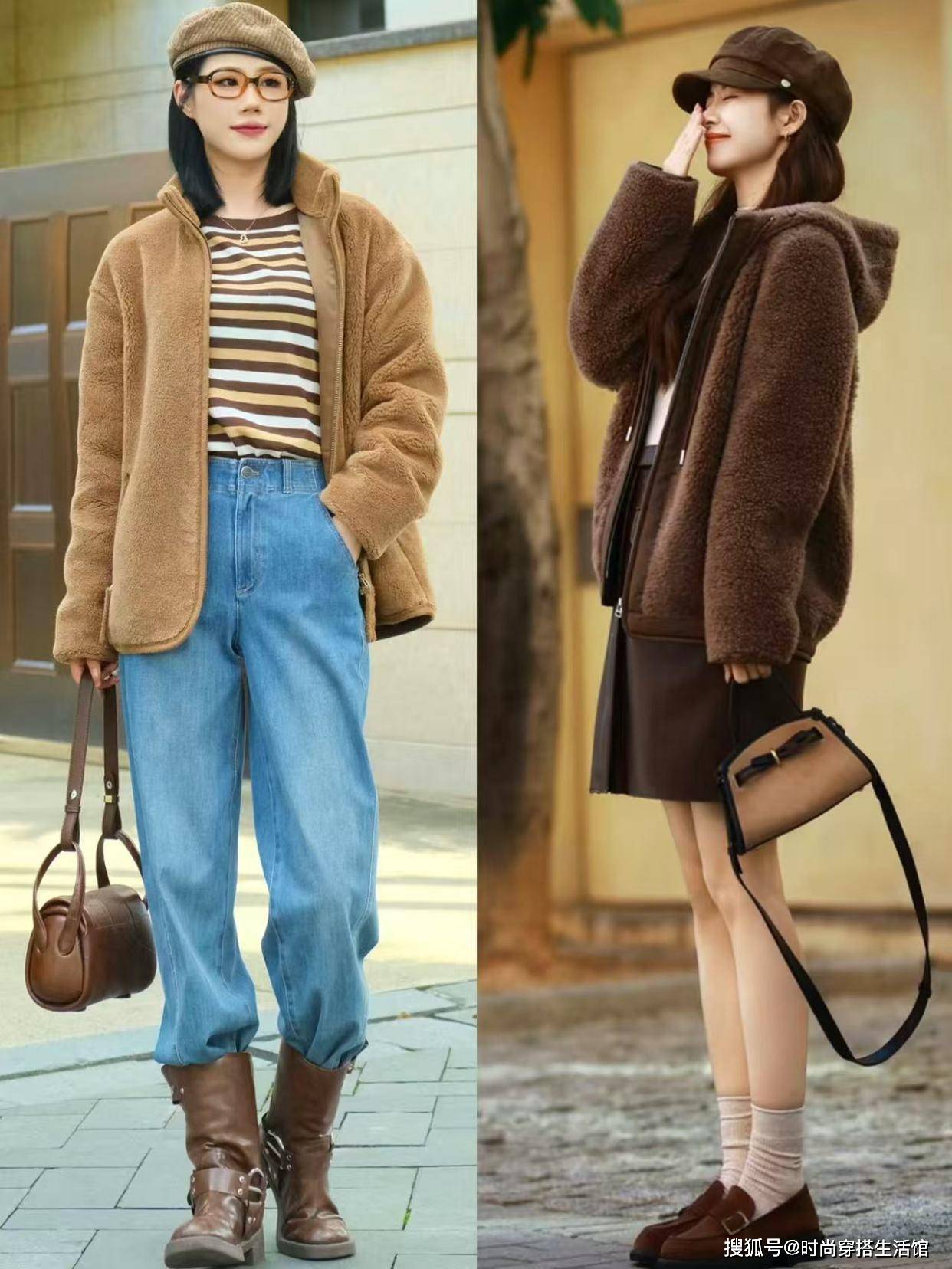 第三种给大家推荐选择的外套就是羊羔毛外套,羊羔毛外套最近这几年备受大家的欢迎,主要是因为现在的羊羔毛材质轻薄柔软,穿在身上会更加的舒适和保暖,而且羊羔毛的纤维也比较长,会更加的修身和显瘦,但我们要避免选择粗羊毛纤维,这些很容易暴露身材缺点,视觉会更加的臃肿和显胖。