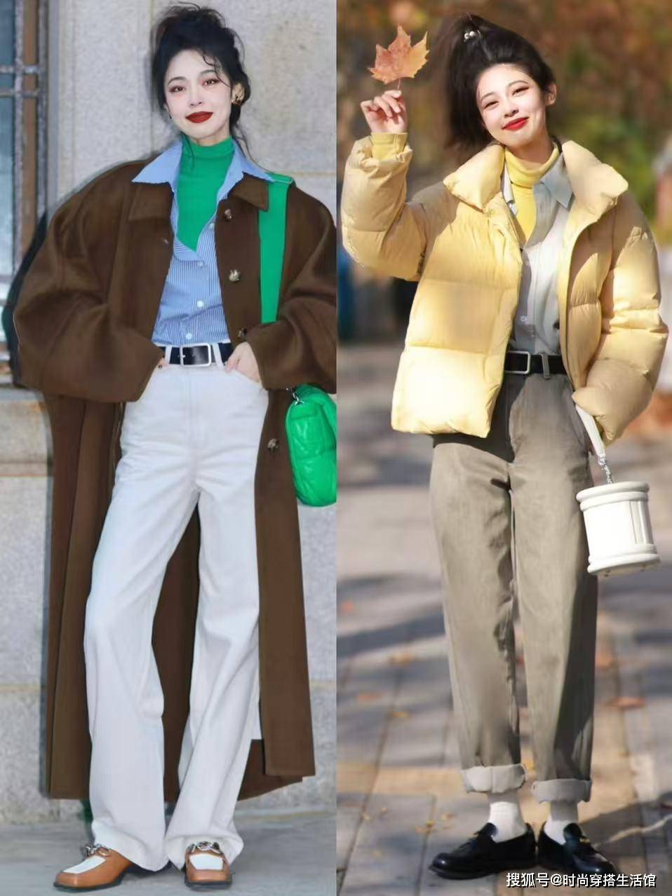 方法②内搭和下装颜色统一,延伸比例