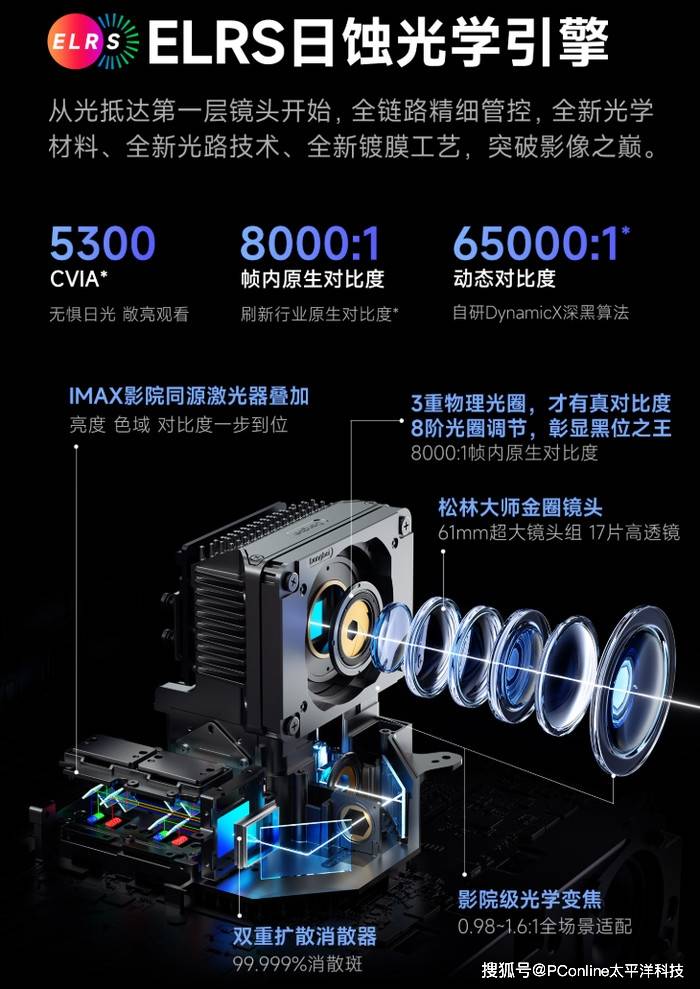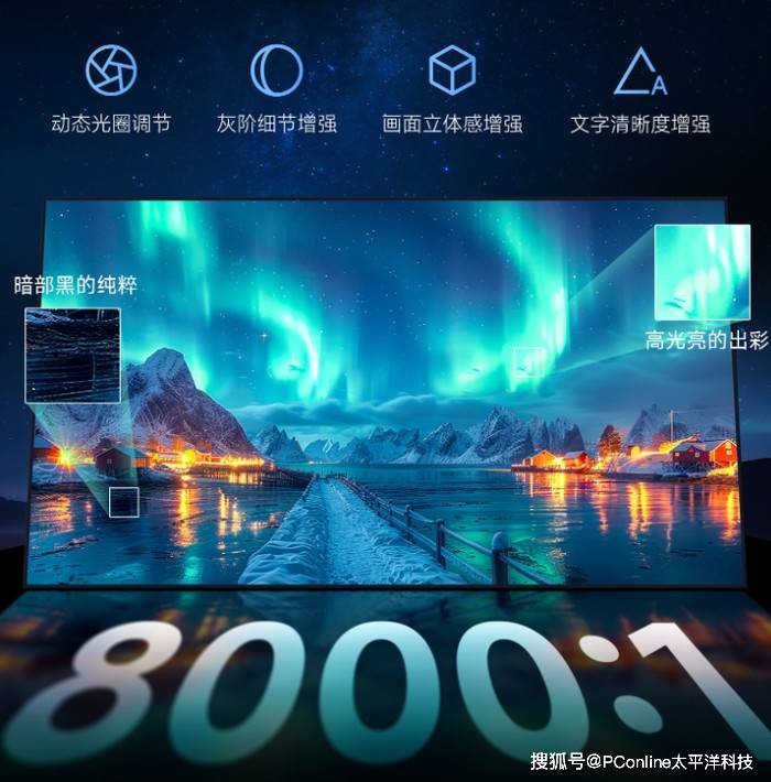 支持8000:1超高原生对比度,再加上首创的仿生三阶可变光圈和DynamicX深黑算法,动态对比度能飙升至65000:1。暗巷里的墙角阴影、远处路灯的微光渐变都能清晰呈现,星云的深邃底色与恒星的璀璨光芒也能同时保留细节,仿佛透过望远镜直视星空。亮得通透、暗得细腻,正是高端家庭影院追求的核心体验。
