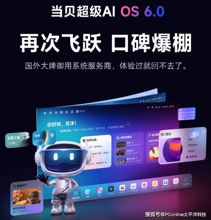 全新的当贝AI OS 6.0系统深度接入了通义千问、豆包、DeepSeek等主流AI大模型,还打造了五大AI智能体,能精准匹配不同家庭成员的需求。老人想看戏曲,喊一句“打开京剧频道”,系统会直接调出常看的栏目,连方言指令都能准确识别;家长想给孩子找早教内容,也能筛选出适合的资源;追光指向遥控的加入更让操作变简单,像用手机触屏一样指哪打哪,选片、调参数不用再按方向键一格格移动,连孩子都能轻松上手。
